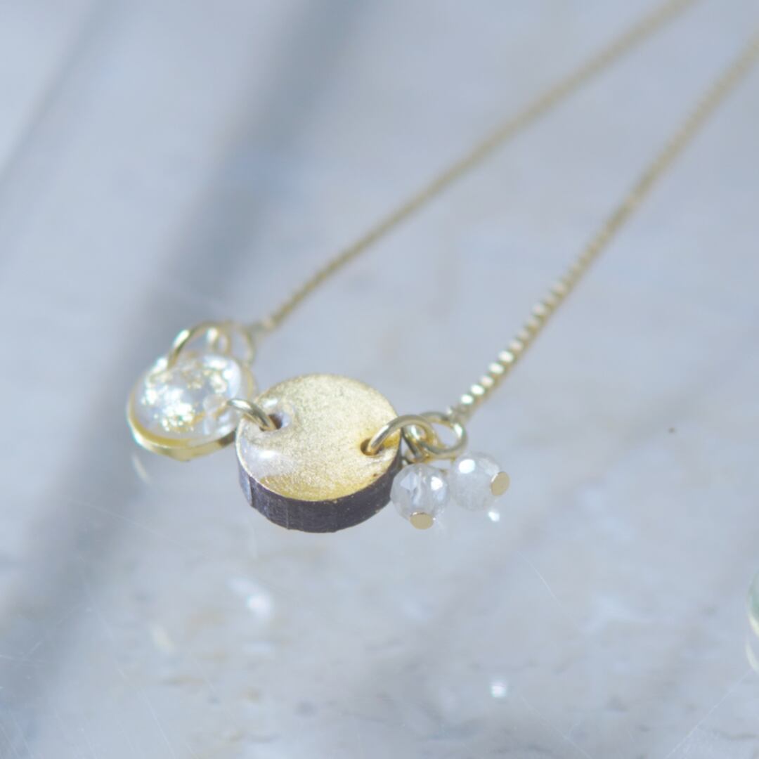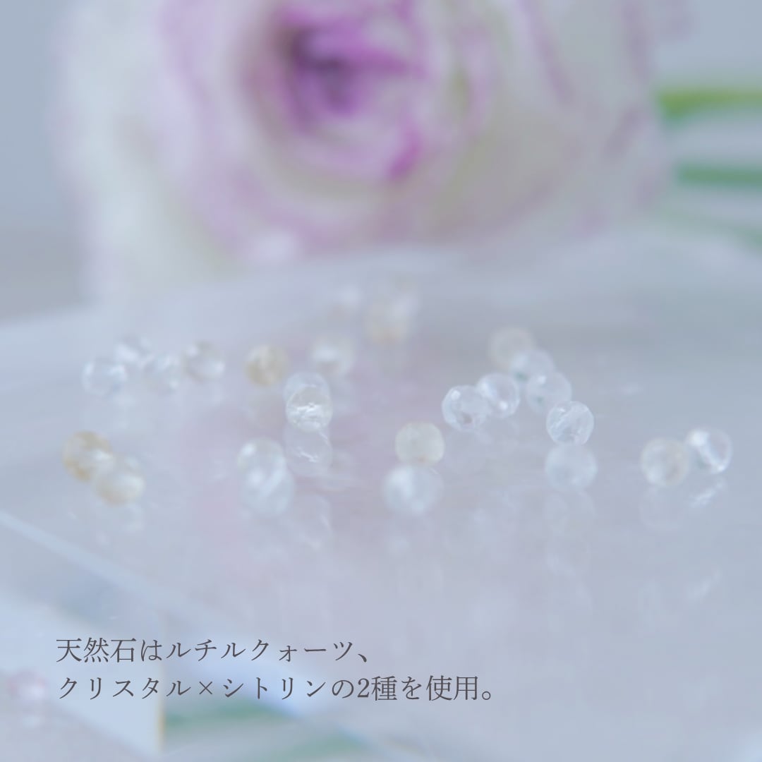 ・銀箔、能登ヒバ、レジン、サージカルステンレス、18Kメッキ、ルチルクォーツ、クリスタル×シトリン