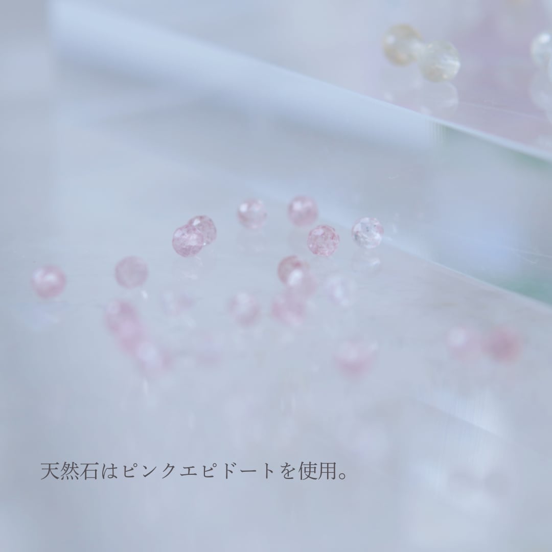 天然石で選んだ、ピンクエピドートは「自己受容」という石言葉の意味があります。ありのままを受け入れて、前向きに生きる女性に向けてお作りしています。