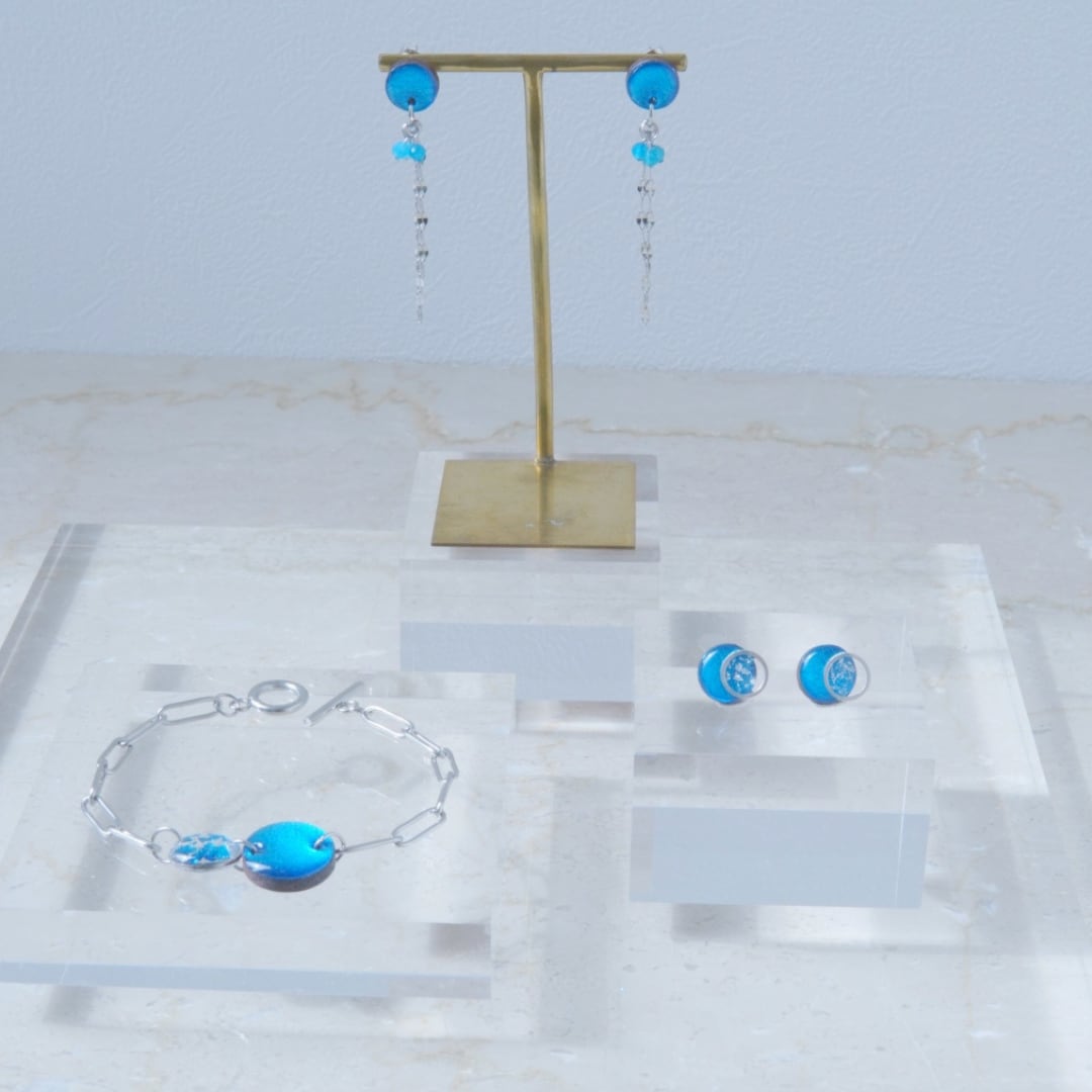 銀箔、能登ヒバ、サージカルステンレス、レジン